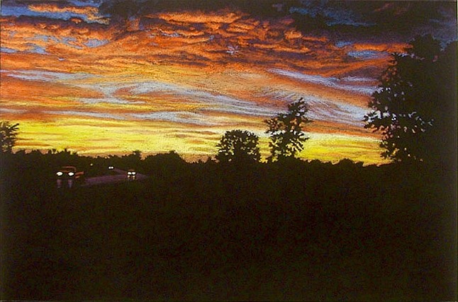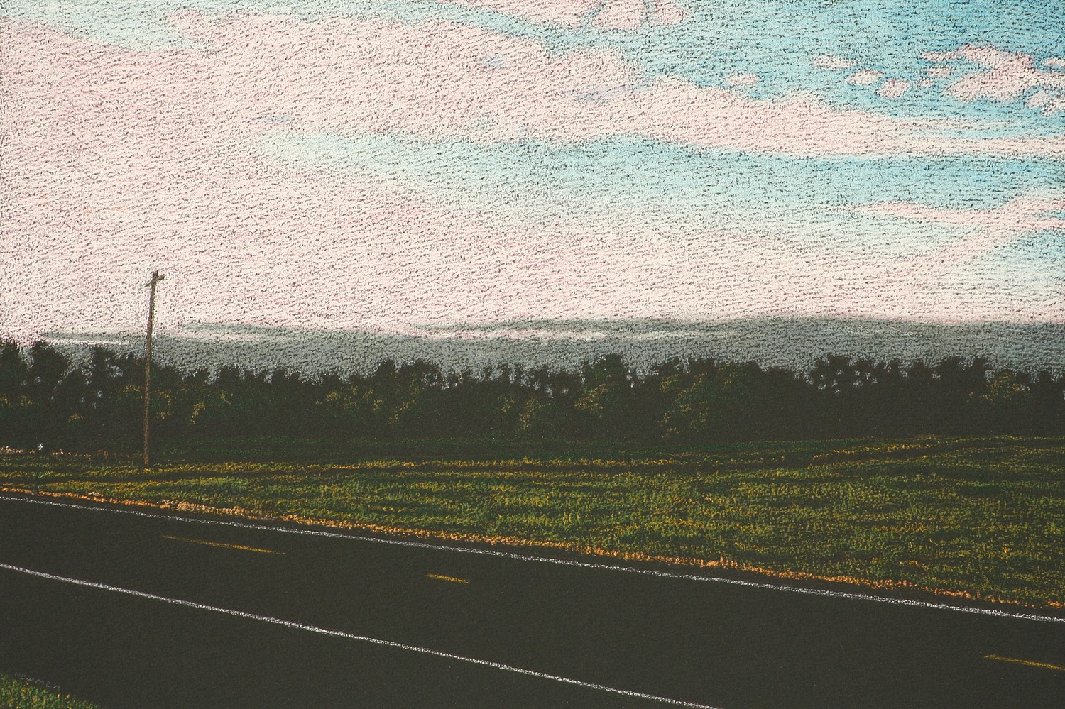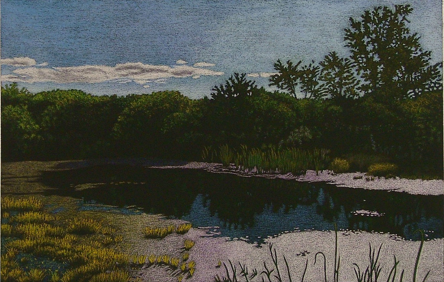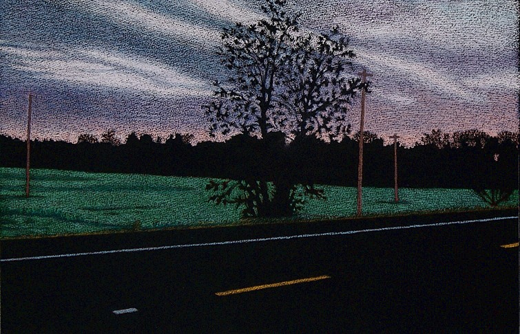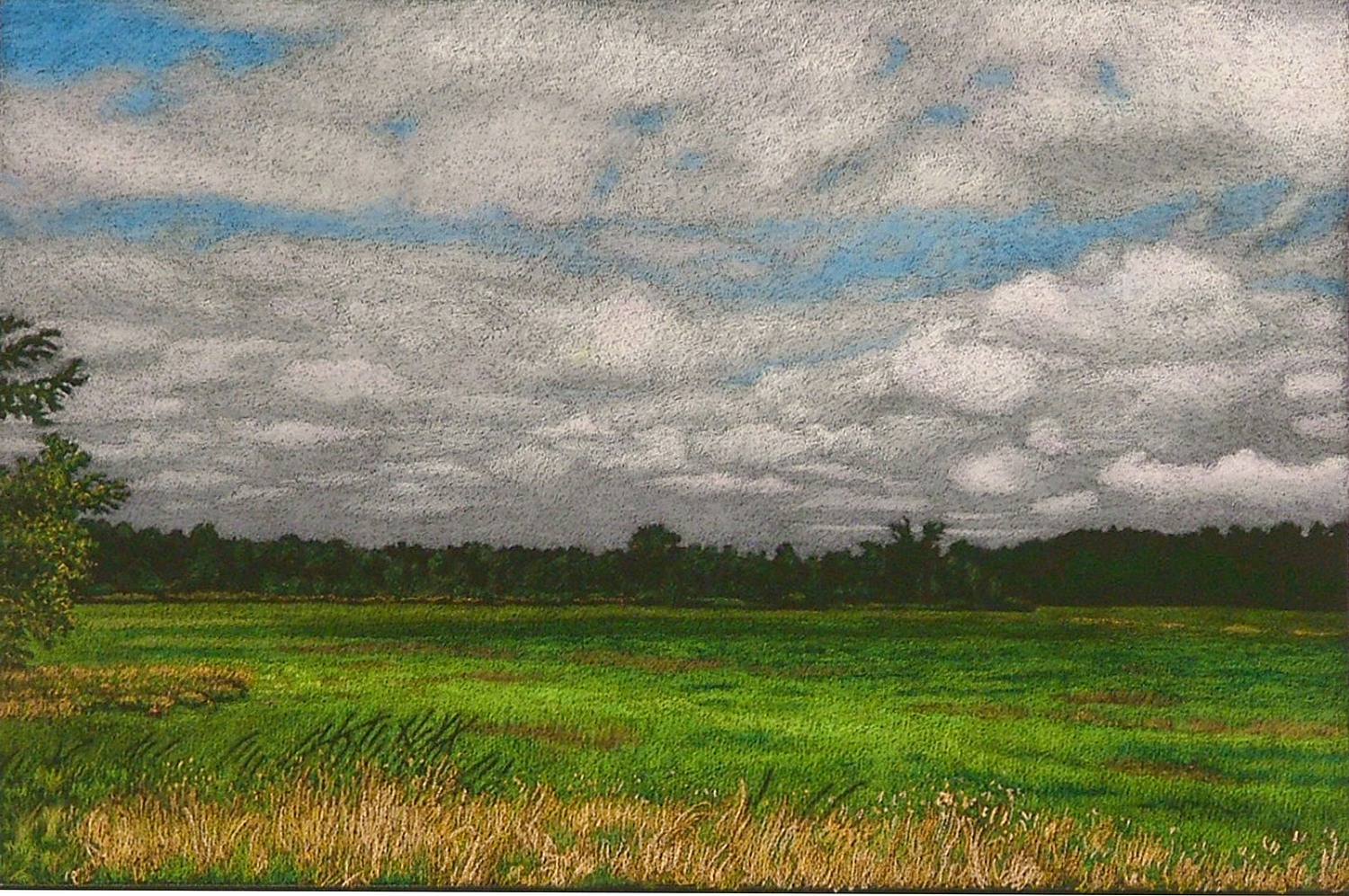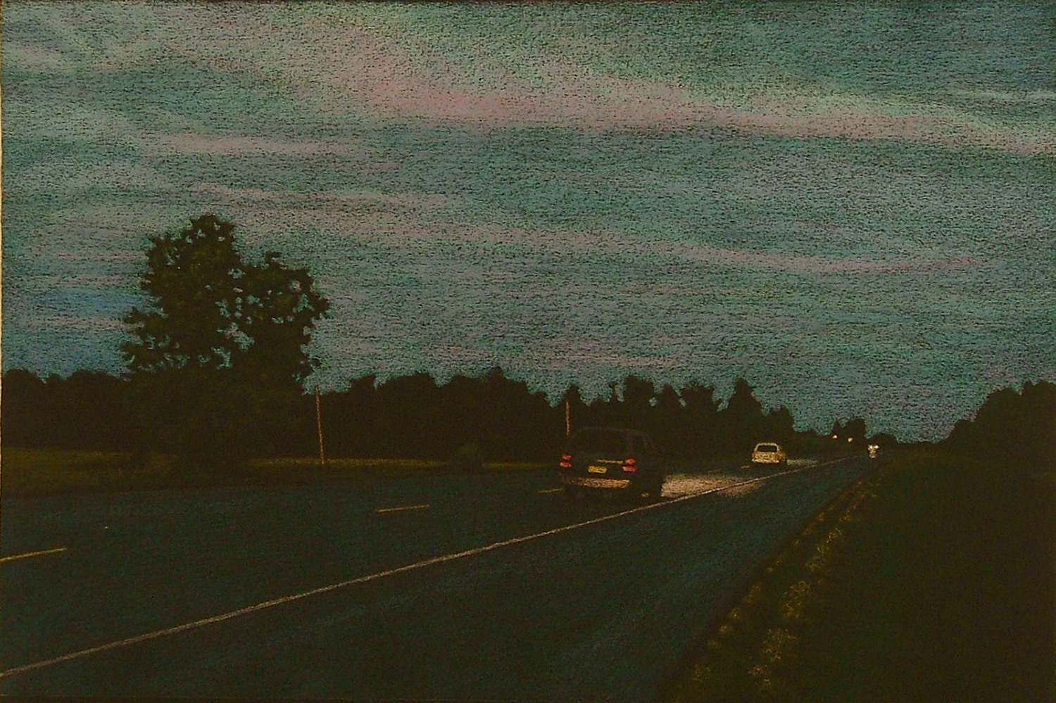 When I began drawing landscapes I soon settled on pastel on black paper as the medium I wanted to use. The black of the paper enriches and enlivens the colours of the pastels. In contrast with watercolour, where the paper becomes the lightest colour, in pastel the black paper becomes the darkest hue.