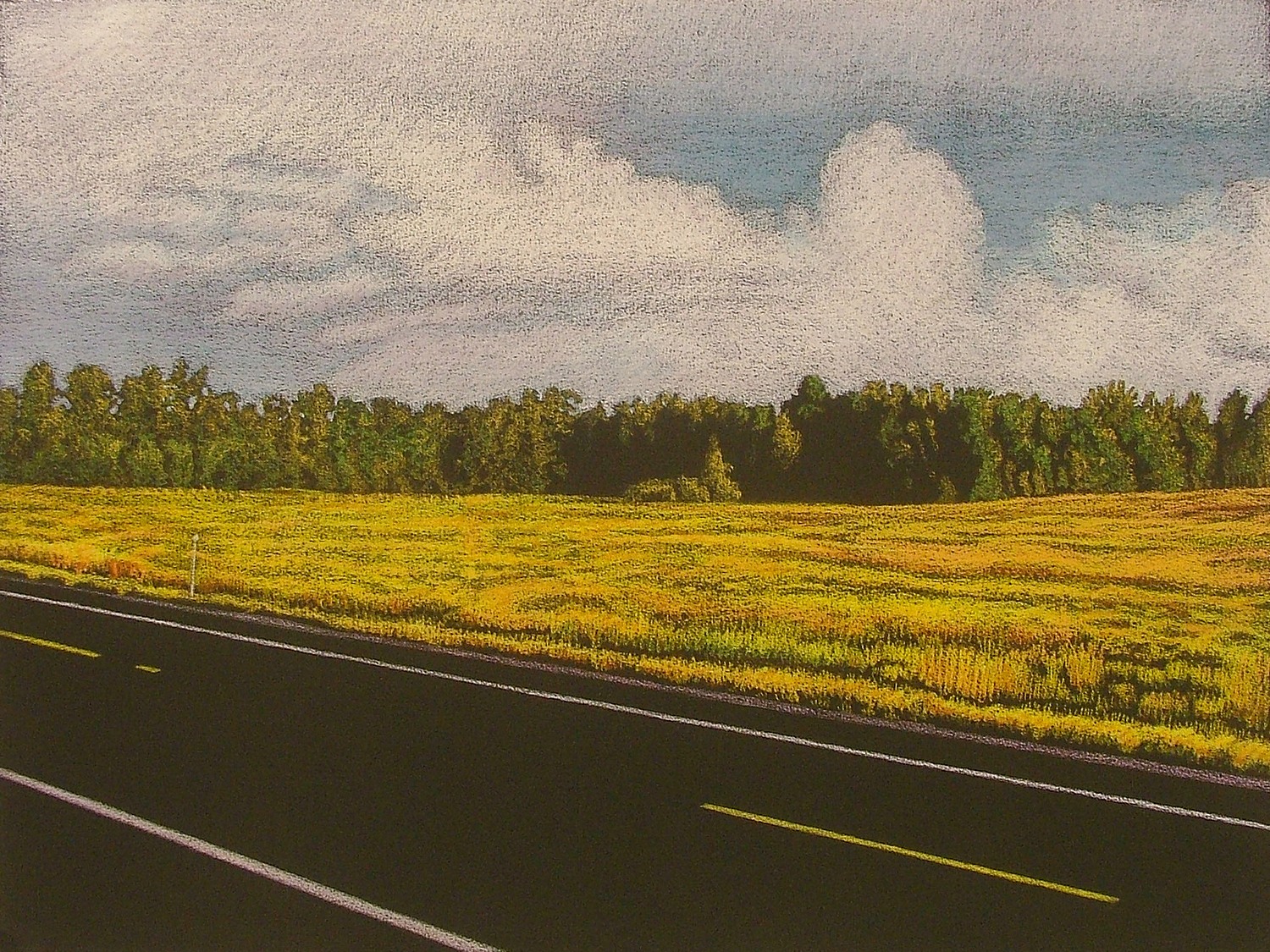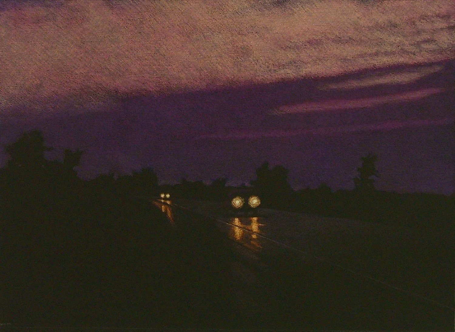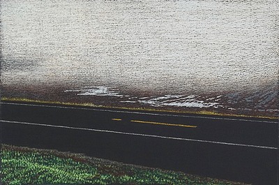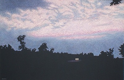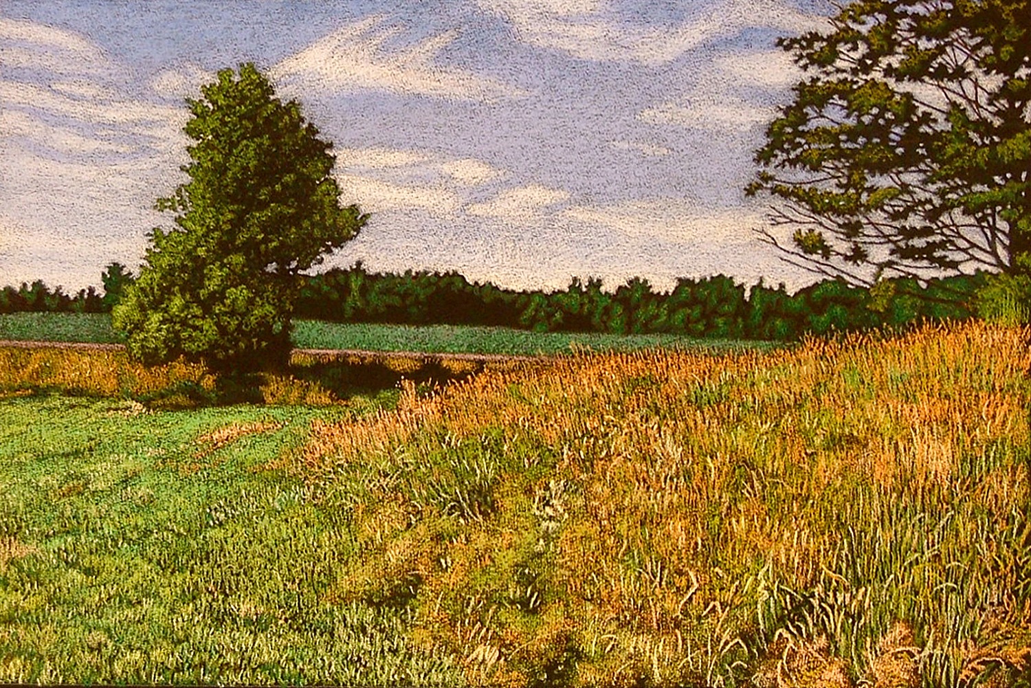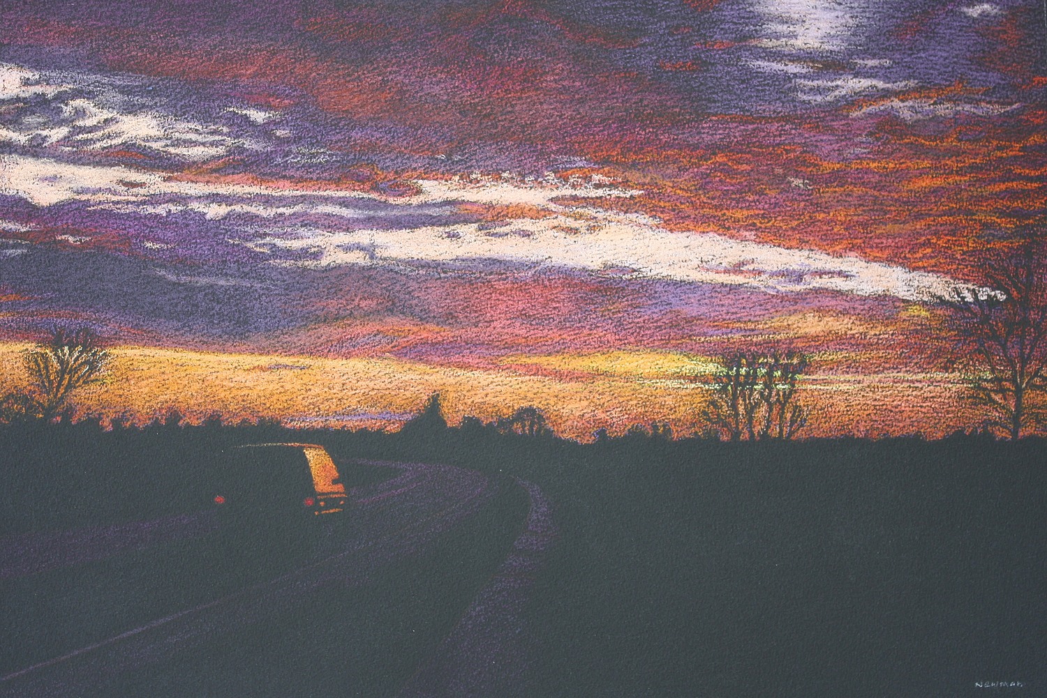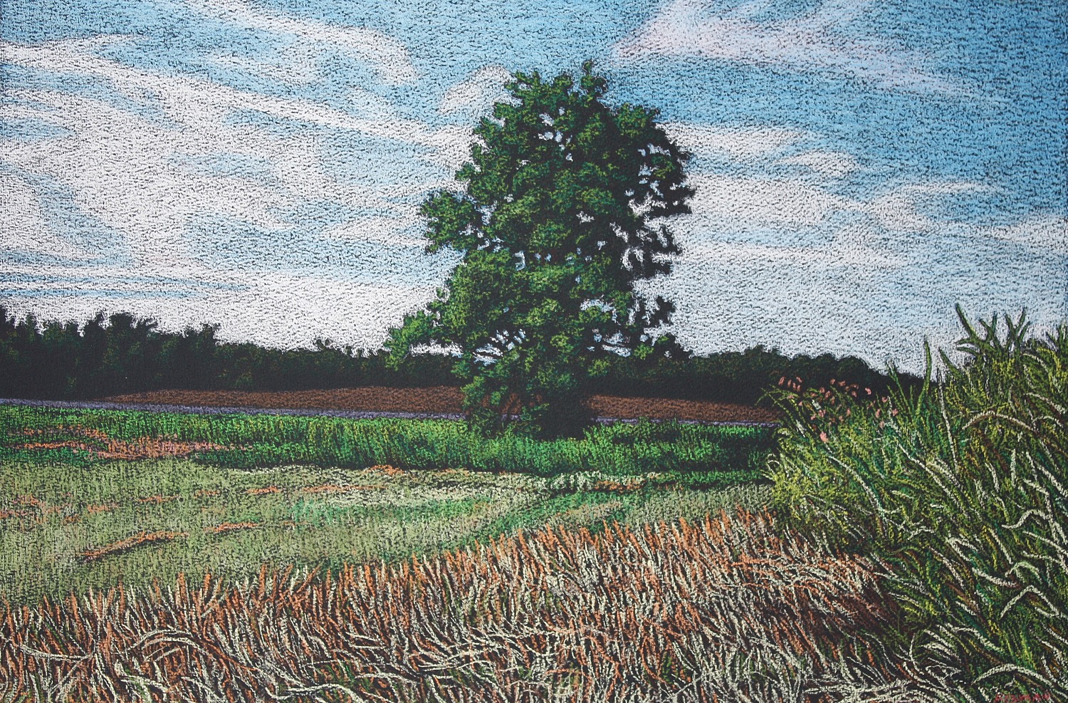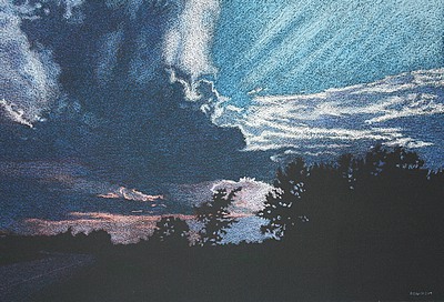 When I began drawing landscapes I soon settled on pastel on black paper as the medium I wanted to use. The black of the paper enriches and enlivens the colours of the pastels. In contrast with watercolour, where the paper becomes the lightest colour, in pastel the black paper becomes the darkest hue.