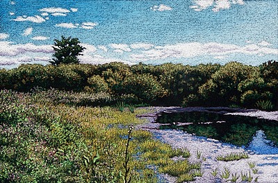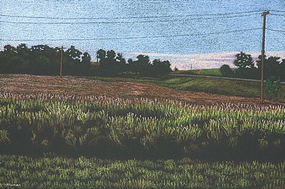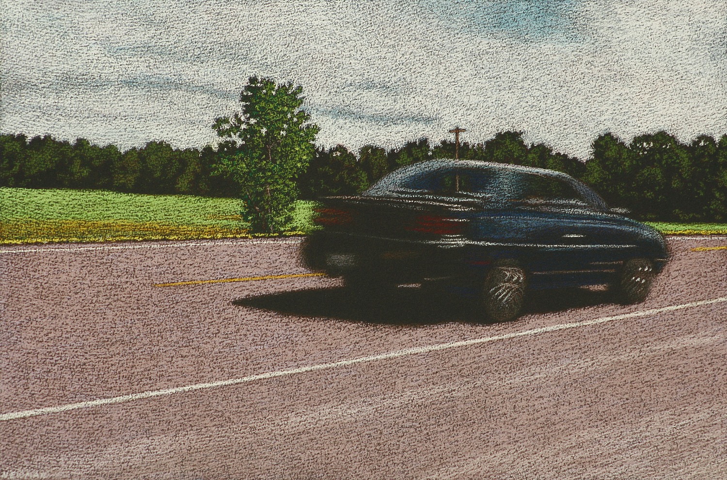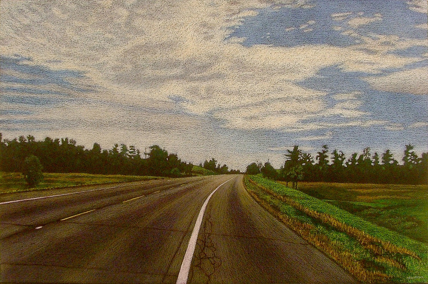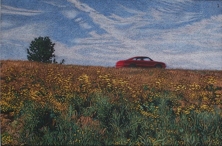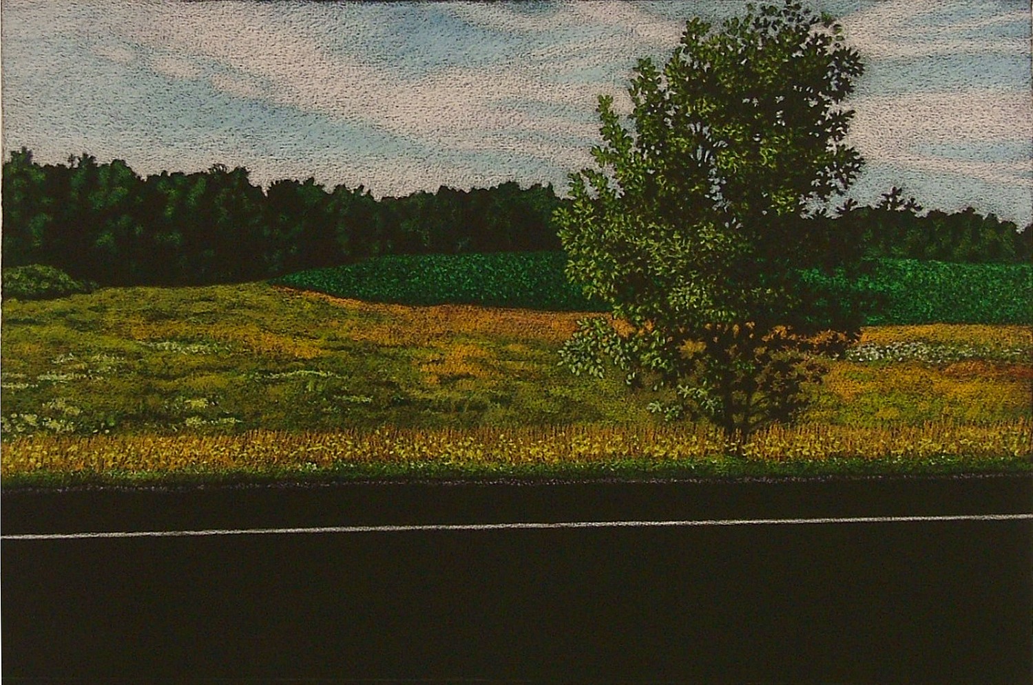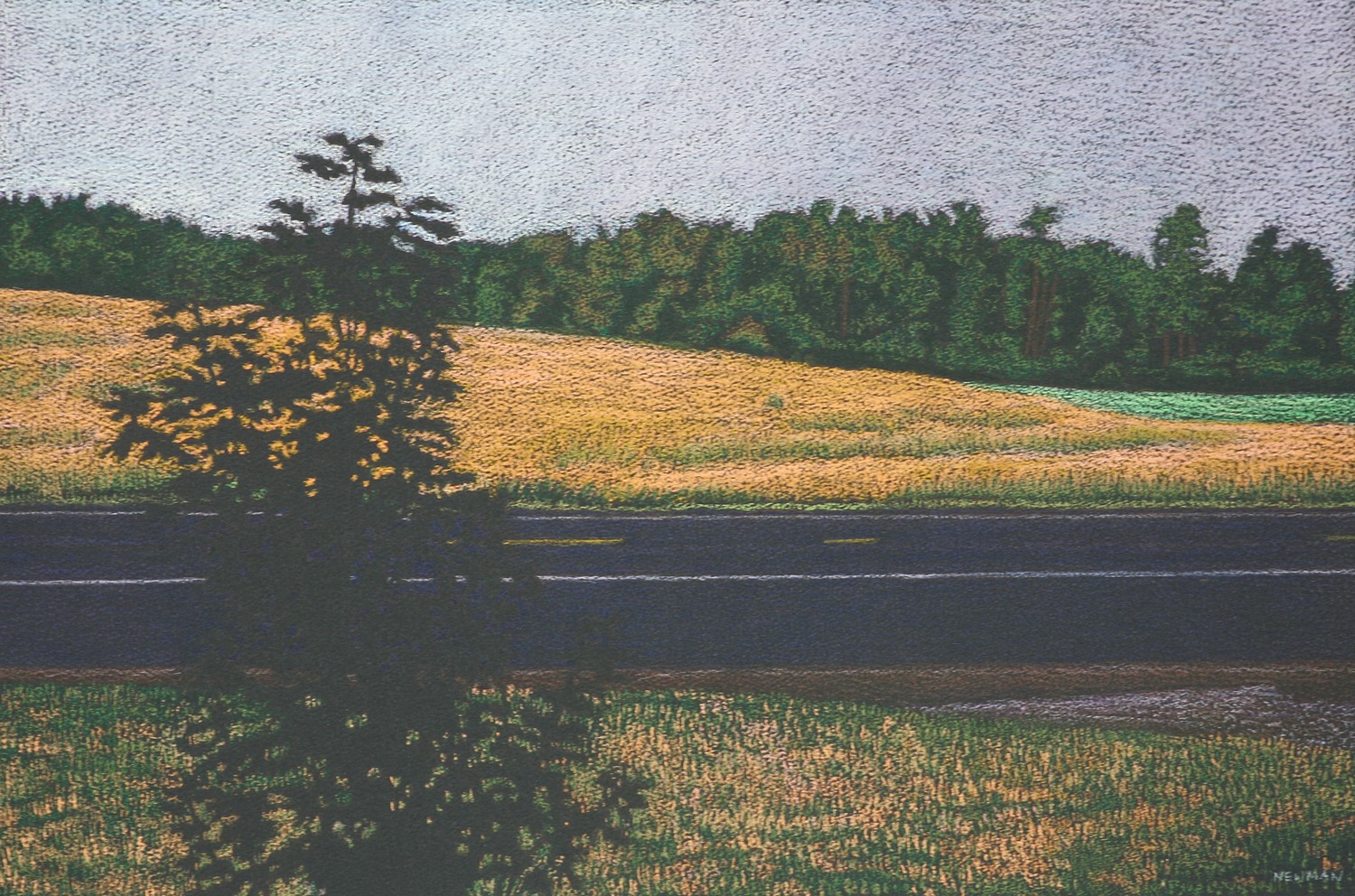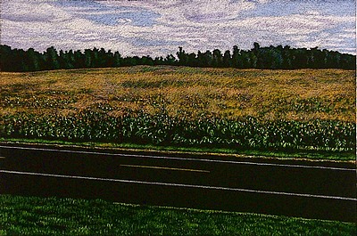 When I began drawing landscapes I soon settled on pastel on black paper as the medium I wanted to use. The black of the paper enriches and enlivens the colours of the pastels. In contrast with watercolour, where the paper becomes the lightest colour, in pastel the black paper becomes the darkest hue.